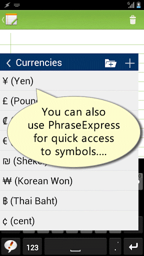 Autotext PhraseExpress can be used in two modes: A custom keyboard provides maximum compatibility. Alternatively, you can use PhraseExpress as a accessibility service (requires Android v4.3 or later), allowing you to use it along with your favorite keyboard (such as swipe keyboards).